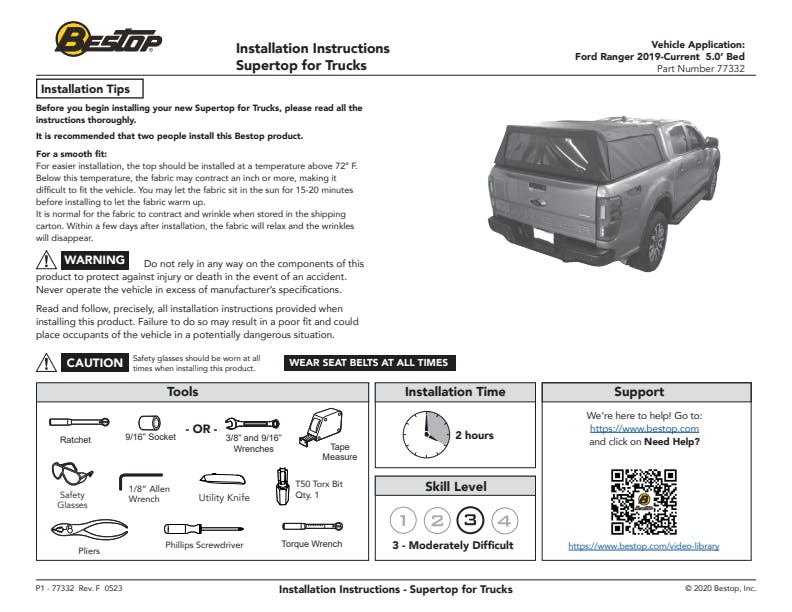 Supertop for Truck 2 - '19-23 Ranger; For 5 ft. bed